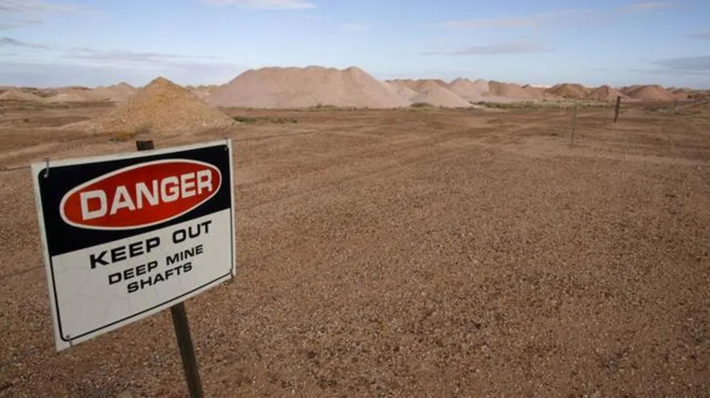 Andar a pé no deserto perto de Coober Pedy pode ser perigoso. O terreno é salpicado de poços de mineração abandonados — Foto: Getty Images/via BBC
