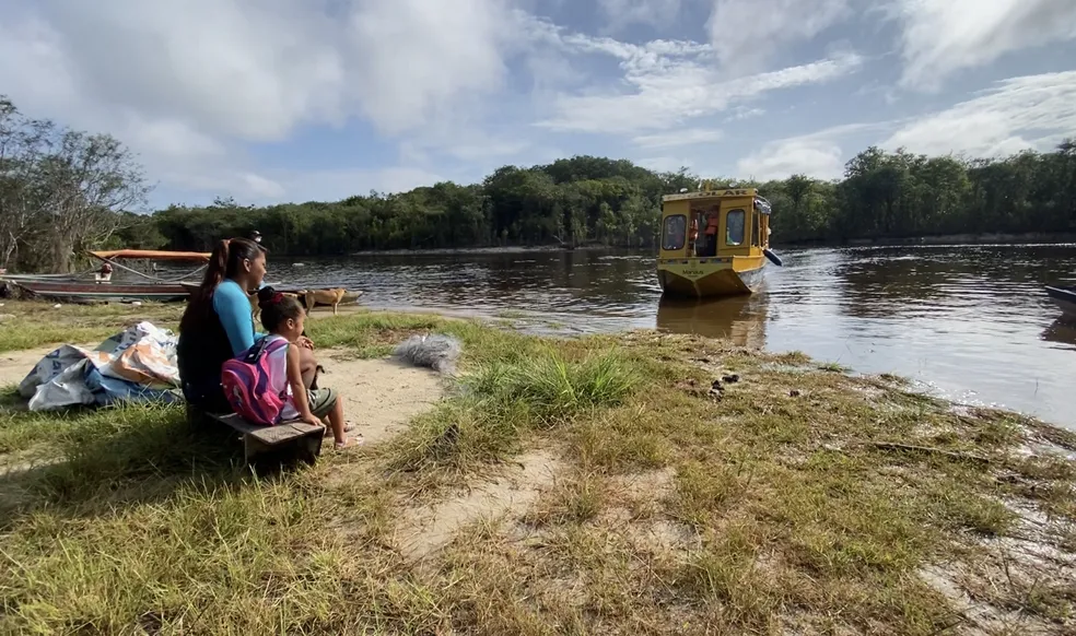 A Sofia conta com a ajuda da mãe, Edileia Nascimento, que arruma o cabelo da filha, põe o uniforme e caminha até a beirada do rio, para esperar o barco da escola, todos os dias. Rotina que a mãe já viveu quando criança e, hoje, vê a filha poder ter acesso ao estudo.