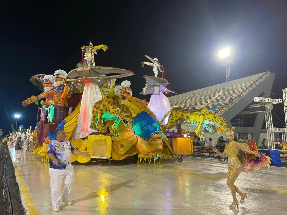 A segunda a entrar, também em meio a chuva, foi a escola de samba Primos da Ilha, com a temática “D’Além mar, o Amazonas conquistou! José Azevedo, o legado do gajo sonhador”, homenageando o empresário que faleceu em 2018 e contribuiu com o desenvolvimento econômico em Manaus.