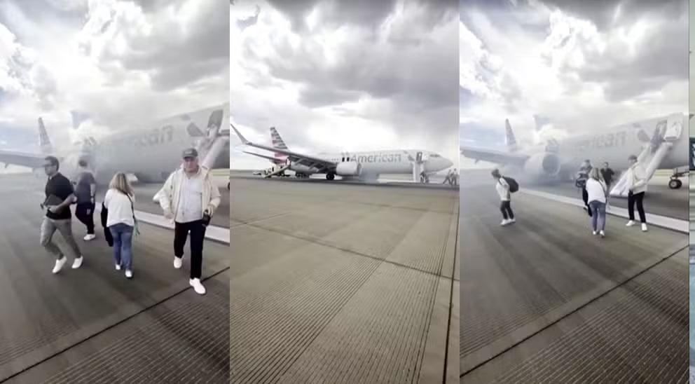 Passageiros de um voo da American Airlines precisaram evacuar a aeronave no Aeroporto Internacional de Denver (EUA) na tarde deste sábado (26), após falha mecânica e princípio de incêndio durante a decolagem.