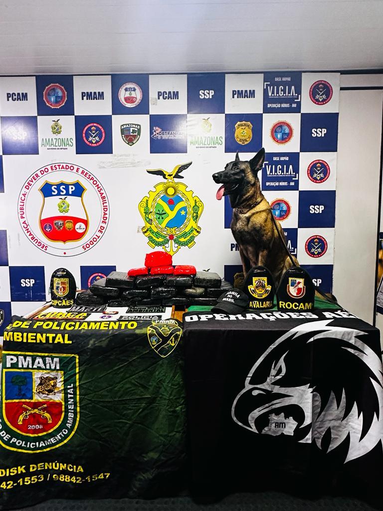 Com auxílio da cadela Havana, a Polícia Militar do Amazonas em operação na Base Fluvial Arpão apreendeu, na manhã desta segunda-feira (16/10), cerca de 20 quilos de entorpecentes, entre cocaína e pasta-base de cocaína. Parte da droga foi encontrada escondida em uma esteira ergométrica, despachada como encomenda na embarcação Maria Monteiro com destino a Manaus, abordada em Coari (a 363 quilômetros da capital).