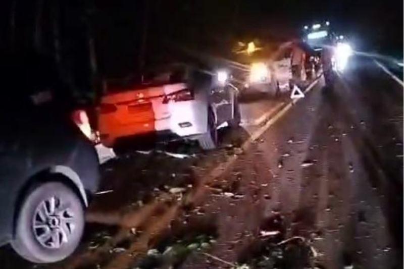 Na ocasião, uma carreta bitrem, que passava na contramão, bateu na fileira de carros que aguardava a liberação da pista. Com o impacto, um dos veículos atingiu os bombeiros.