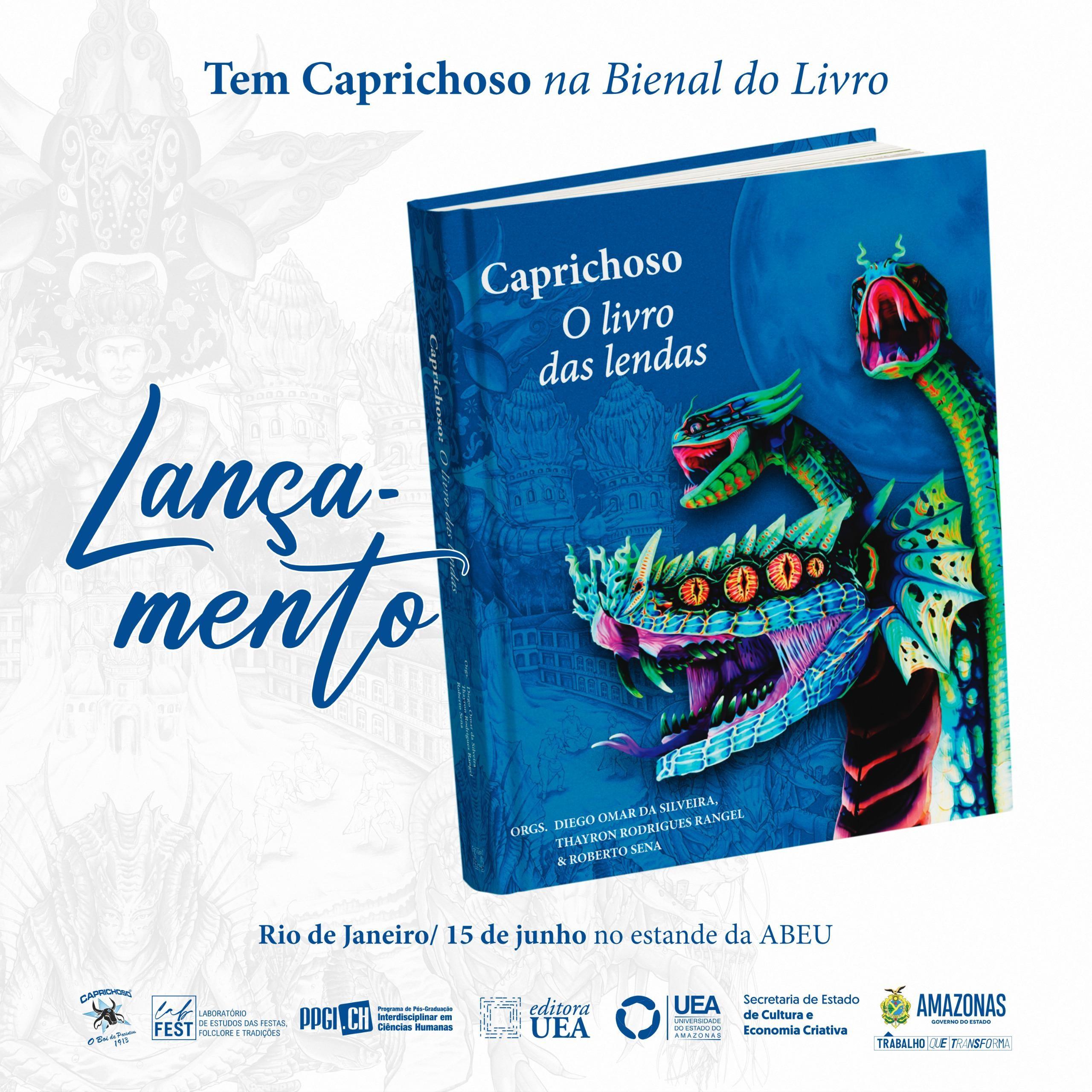 O lançamento do livro está marcado para o dia 15 de junho, no estande da Associação Brasileira das Editoras Universitárias (ABEU), já que a publicação é assinada pela Editora da Universidade do Estado do Amazonas (UEA). A obra reúne as lendas que o Boi Caprichoso levou à arena do Bumbódromo entre 1996 e os dias atuais, compondo um registro inédito e precioso da trajetória artística da agremiação azul e branca.