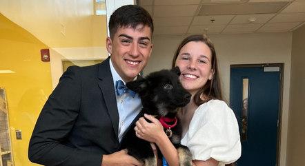 Um casal do estado da Virgínia, nos Estados Unidos, remarcou a cerimônia do casamento para conseguir adotar uma cachorra. Eduardo Del Pozo e Regan Mast adiantaram o “sim” para buscar Daisy, uma fêmea de pastor alemão de 4 meses, no abrigo onde ela vivia. Eles ainda estavam vestidos com as roupas usadas para assinar os papéis da união quando foram ao local.