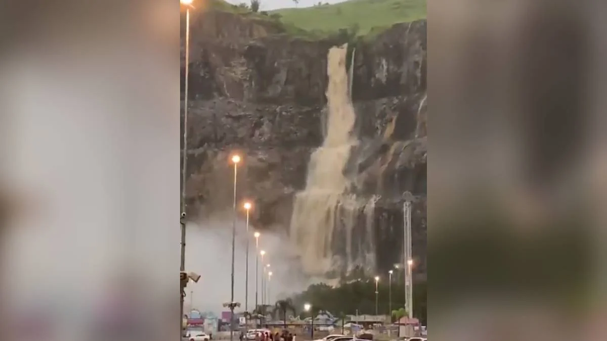 A chuva forte que caiu em Nova Iguaçu no sábado, 28, provocou a formação de uma grande cascata em um morro localizado atrás do Shopping Nova Iguaçu, na cidade homônima, na Baixada Fluminense, no Rio de Janeiro. Um vídeo publicado na internet mostra uma grande quantidade de água escorrendo pelo morro. Apesar do perigo, ninguém ficou ferido.