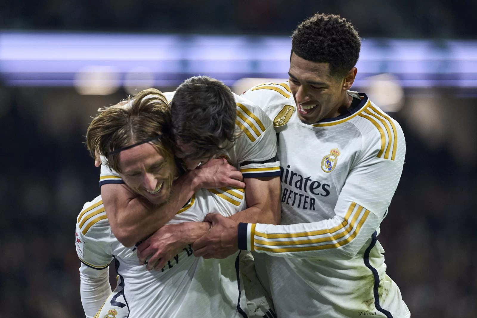 No primeiro tempo, o time da casa não deu chances ao adversário. O inglês Bellingham marcou o primeiro gol do Real Madrid ao completar de cabeça uma linda assistência de Luka Modric aos 25 minutos da etapa. Foi o 13º gol de Bellingham, que lidera a tabela de artilheiros do Espanhol. O atacante brasileiro Rodrygo fez o segundo após confusão na área do Villareal. Inicialmente, foi marcado impedimento, mas após revisão do VAR o gol foi validado.