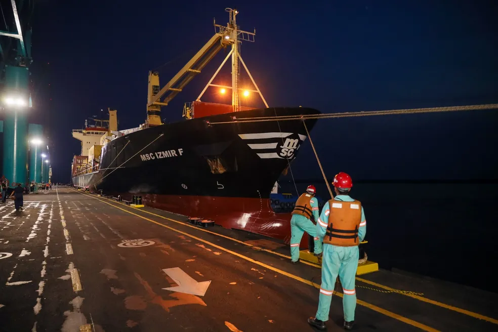 O Izmir chegou ao porto no sábado (21) com 140 contêineres abastecidos com insumos para a Zona Franca de Manaus. Nesta semana, o navio deixou a capital abastecido com 110 contêineres.