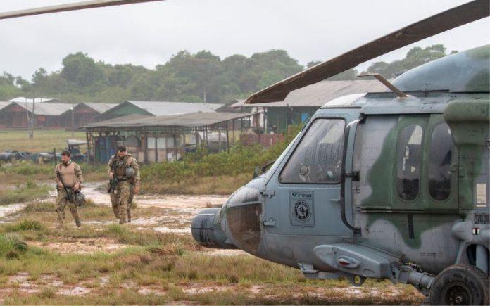 O Comando Conjunto Ágata Fronteira Norte, por meio da Operação Ágata Fronteira Norte, realizou no dia 13 o transporte de 11 garimpeiros apreendidos em Uaicas, região do Uraricoera, Terra Indígena Yanomami. A ação foi executada por efetivo da Força Terrestre Componente (FTC), localizado em Parima, que encontrou o acampamento, realizou a prisão dos garimpeiros e a apreensão de ouro e armamento.