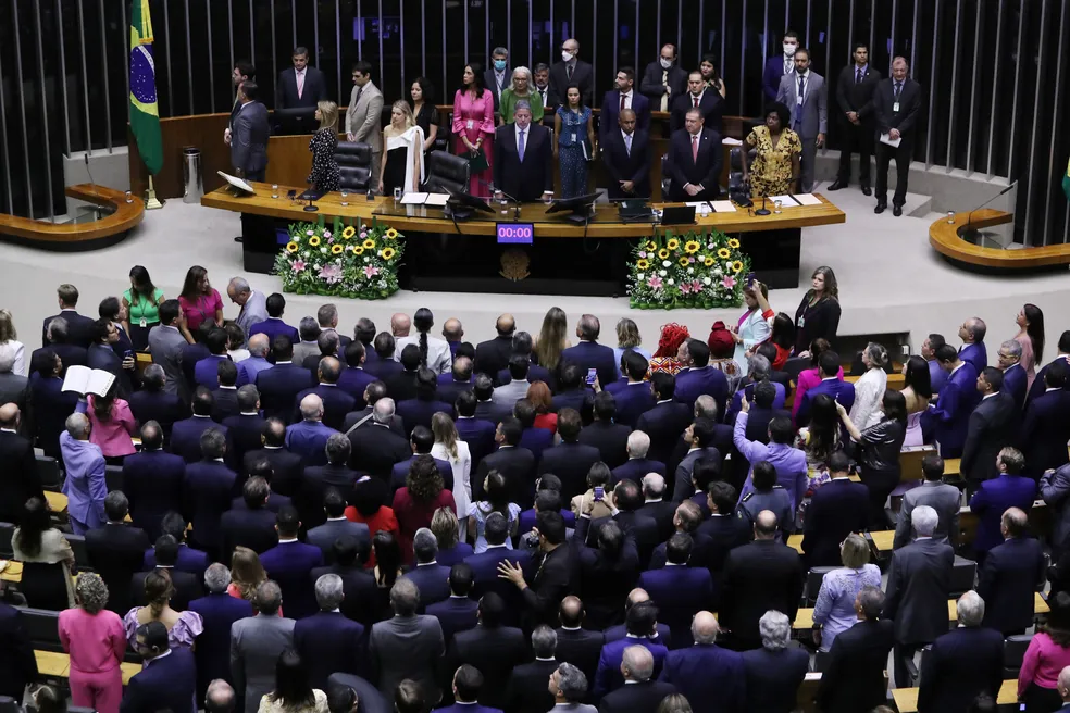 Deputados federais eleitos em outubro de 2022 tomaram posse nesta quarta-feira (1º) em cerimônia no plenário principal da Câmara.