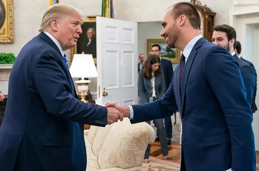 O ex-deputado Eduardo Bolsonaro (PL-SP) informou, nesse domingo (1º/2), que estará presente, no dia 10 de fevereiro, em evento que contará com a participação do presidente da Argentina, Javier Milei, no Mar-A-Lago Club, resort do presidente americano, Donald Trump, na Flórida (EUA).
