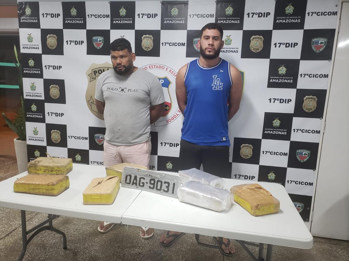 Bruno Luan Oliveira Vasquez e Aldair Lucas Gonçalves dos Santos foram presos com 14kg de drogas, na manhã desta quarta-feira (15), na zona Centro-Oeste de Manaus. A dupla responde pelo processo tentativa de homicídio qualificado, de Odilon Pereira Velho Filho, durante uma festa de carnaval, em um estacionamento de uma universidade particular, da zona Sul de Manaus, no ano de 2020.