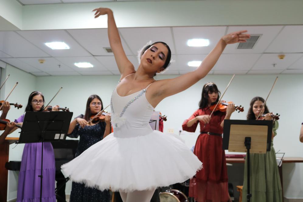 Professores e alunos da Orquestra de Violinos e do curso de Dança da UEA apresentaram o “Concerto Solidário”, sob a direção do professor e maestro do curso de Música da ESAT/UEA, Igor Jouk, professora Bárbara Soares e da professora Raíssa Costa.
