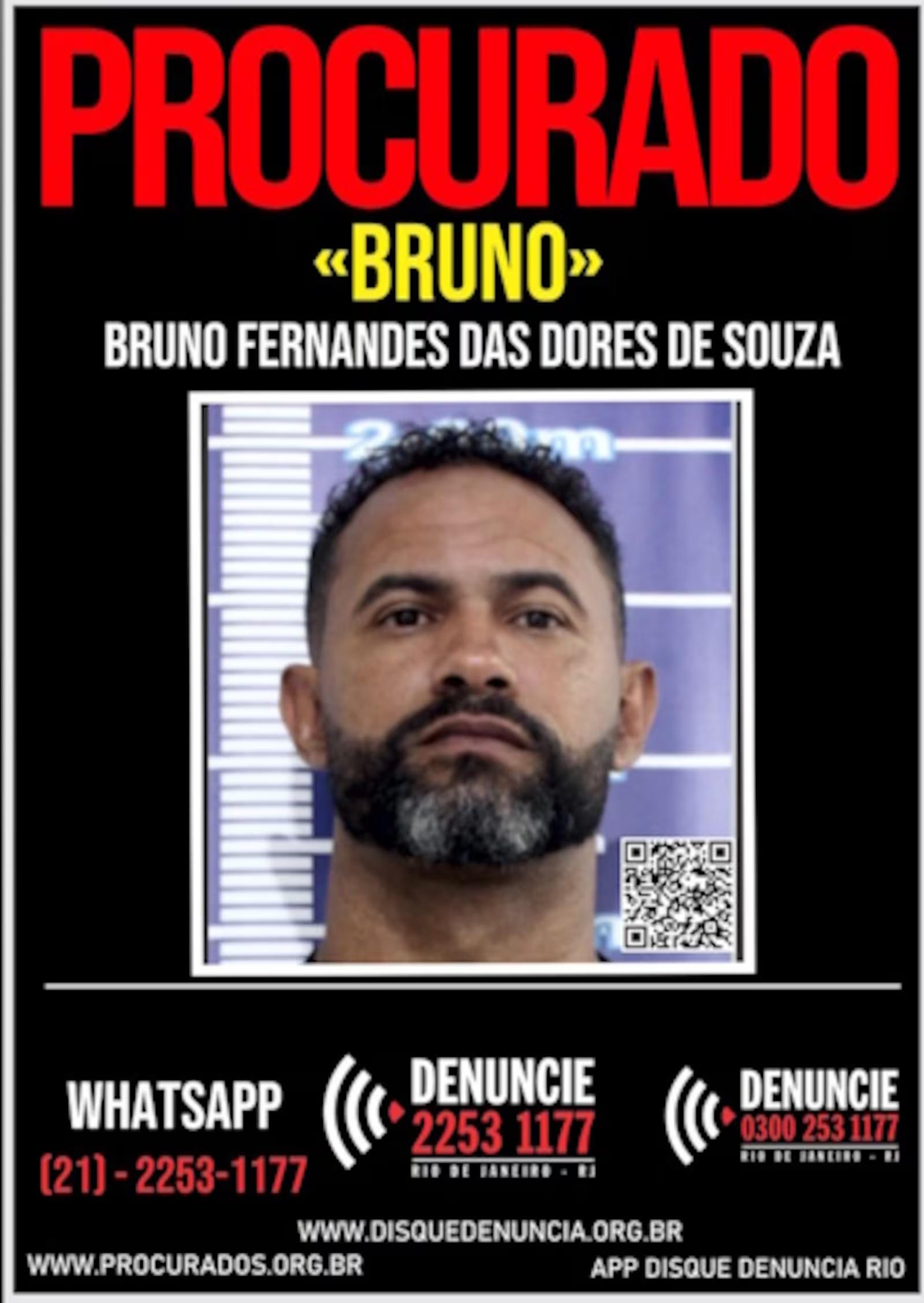 Há uma semana foragido, o goleiro Bruno teve sua foto divulgada em um cartaz de procurado lançado pelo Disque Denúncia. O jogador perdeu o benefício da liberdade condicional e deve retornar ao regime semiaberto para cumprir pena pela morte de Eliza Samúdio. Porém, ele ainda não se apresentou à as autoridades.