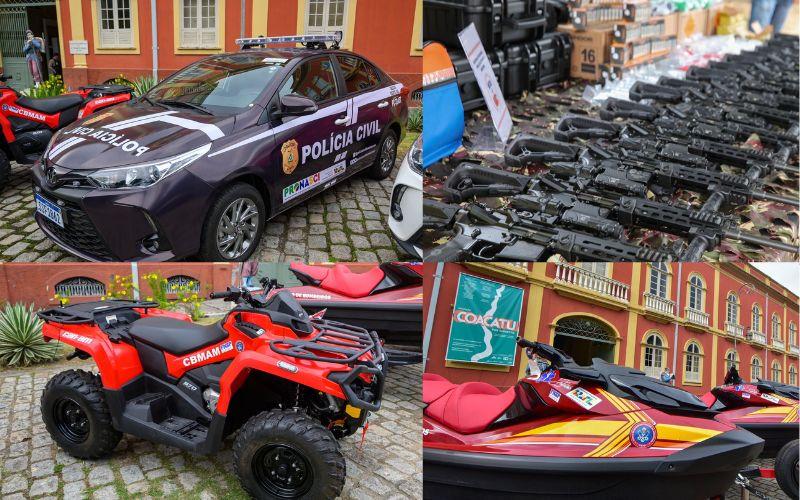 MANAUS – As polícias Civil e Militar do Amazonas receberam novas armas, munição, motos aquáticas e viaturas para ações de policiamento em Manaus e no interior do Estado. O investimento foi de R$ 13,5 milhões, entre recursos federais e do governo estadual.