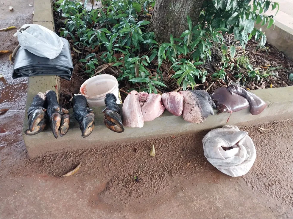 Militares do 2° Batalhão de Polícia Militar de Itacoatiara chegaram ao local após denúncia anônima, e flagraram parte da carne do animal sendo descarregada em um veículo. Ainda não se sabe qual seria o destino do produto.