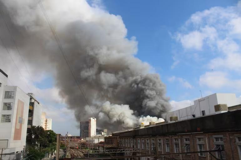 Um incêndio de grandes proporções atinge um shopping no bairro do Brás, região central de São Paulo, desde pouco antes das 7h desta quarta-feira (30).