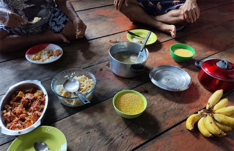 Mesmo com o consumo de industrializados, a base da alimentação ribeirinha nessa região amazônica inclui o peixe e a farinha de mandioca. Os alimentos ultraprocessados são consumidos mais pelos jovens.