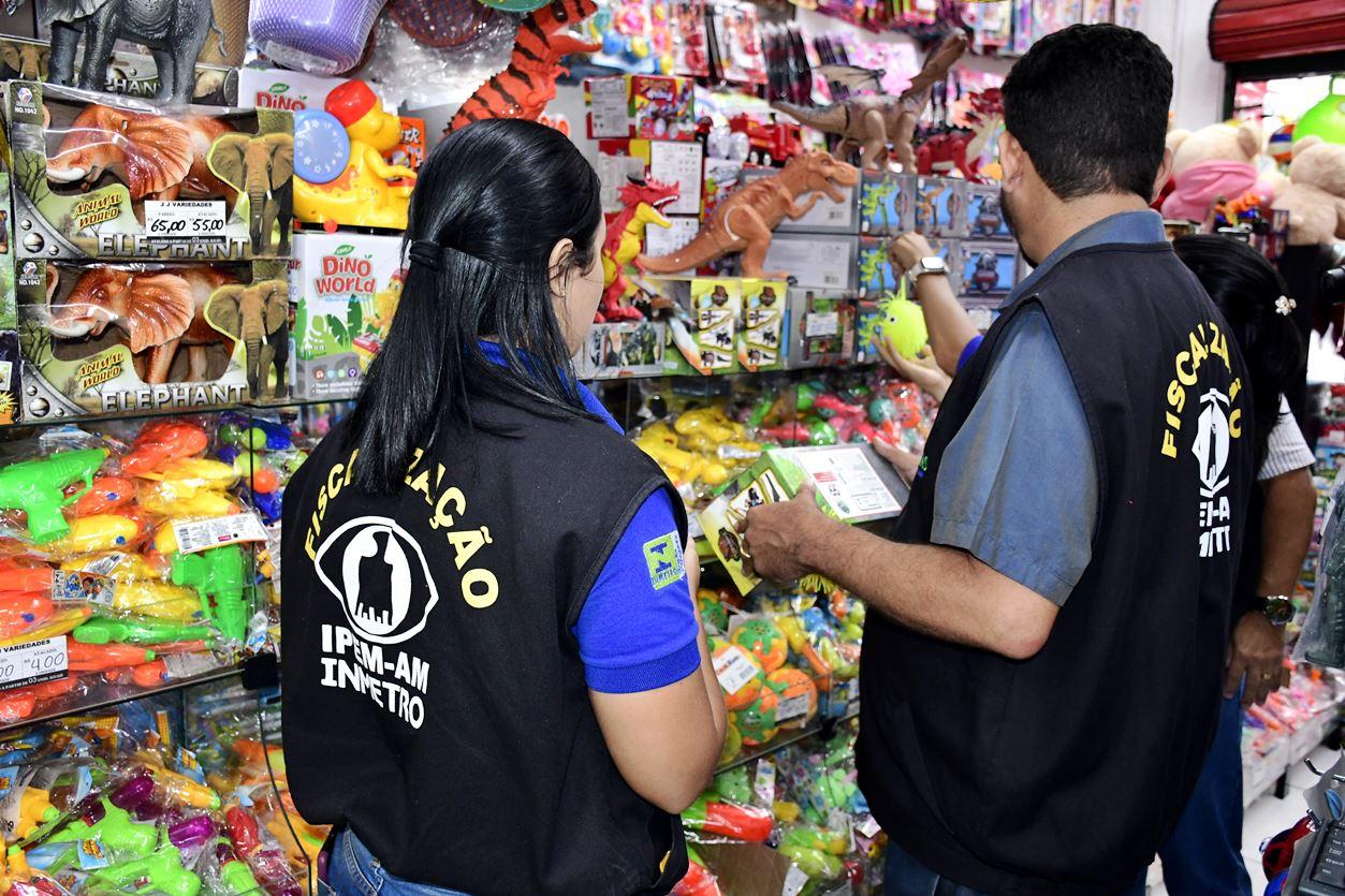 Em operação realizada na manhã desta terça-feira (30/05), o Instituto de Pesos e Medidas do Amazonas (Ipem-AM) retirou de circulação 1.289 brinquedos comercializados irregularmente no comércio de Manaus e Região Metropolitana. Das 15 lojas visitadas, duas foram notificadas e tiveram o material recolhido por não possuir o Selo de Identificação da Conformidade com o número do registro do produto no Instituto Nacional de Metrologia, Qualidade e Tecnologia (Inmetro).