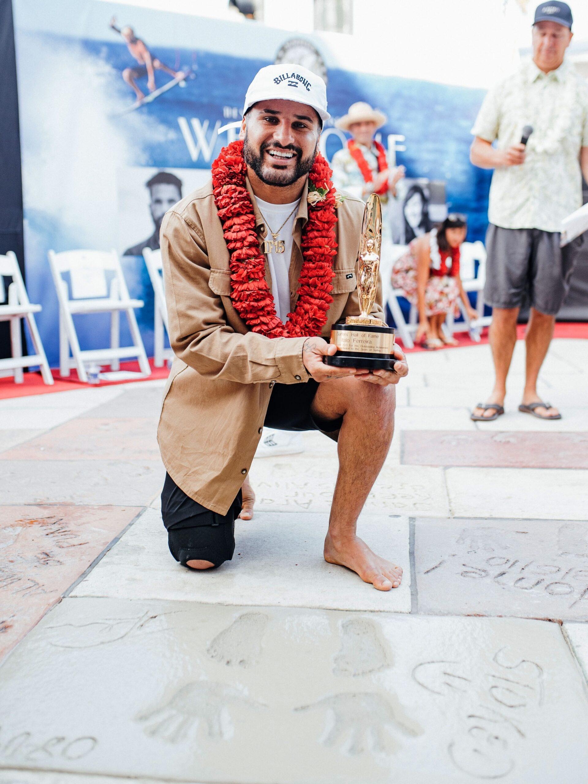 Italo Ferreira foi eternizado com as mãos e os pés registrados num bloco de cimento, além de ganhar uma estatueta para guardar junto às tantas outras premiações que conquistou em sua vitoriosa carreira.