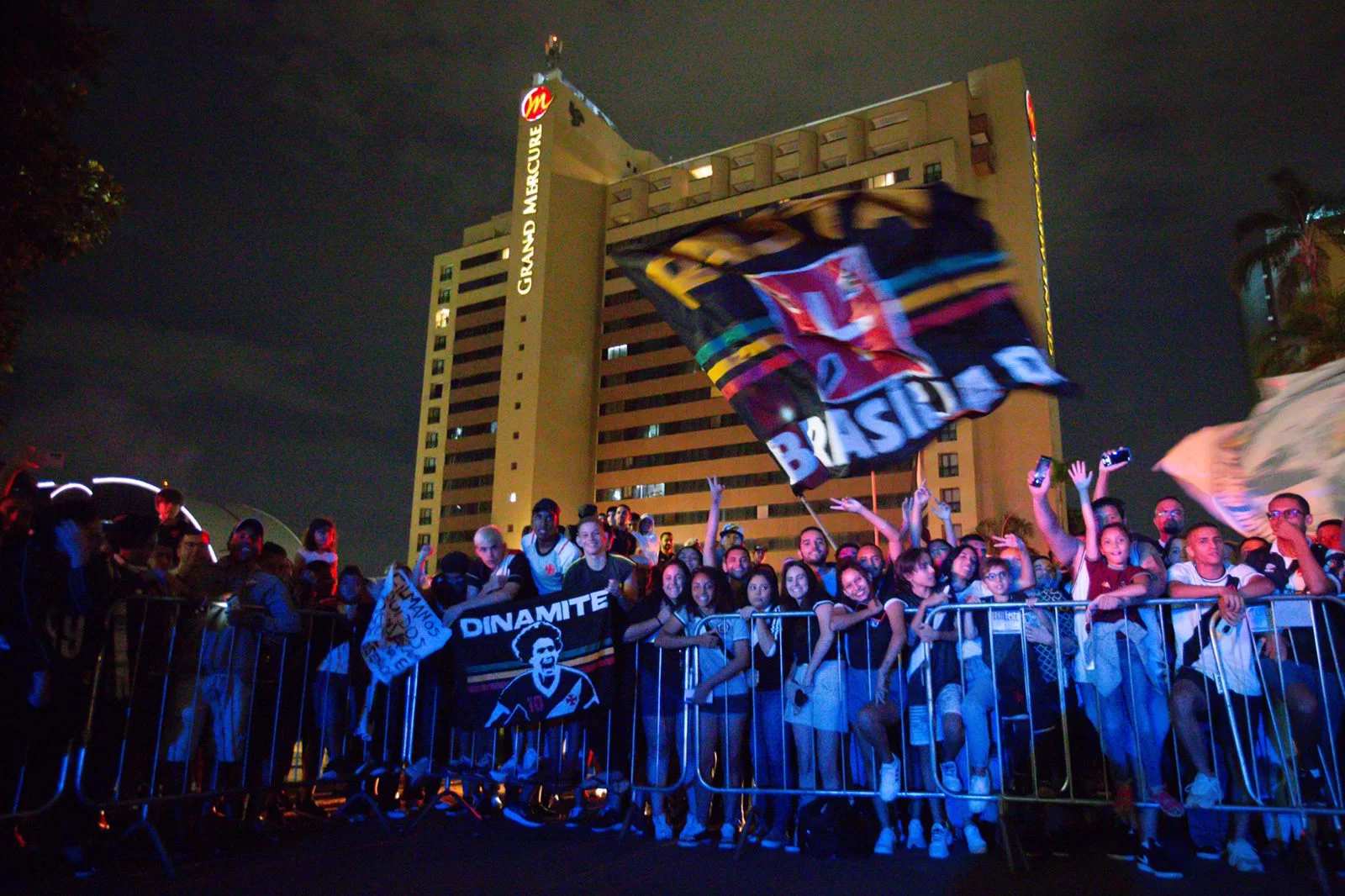 Cheios de simpatia, Dimitri Payet e Pablo Vegetti assinaram camisetas e cumprimentaram os torcerdores que ficaram horas esperando a equipe desembarcar na capital federal. A equipe do Vasco organizou as crianças em uma área especial para elas terem acesso direto aos atletas.
