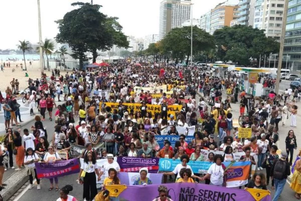 A manifestação foi organizada pelo Fórum Estadual de Mulheres Negras-RJ e contou com a participação de diversos coletivos ligados ao combate da desigualdade racial e de autoridades como a ministra da Igualdade Racial, Anielle Franco.