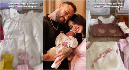 Mavie também recebeu flores, bonecas, ursos e enfeites personalizados com a inicial ou o nome dela. Fãs de Bruna e Neymar expressaram o amor pela família em cartas — algumas escritas à mão.