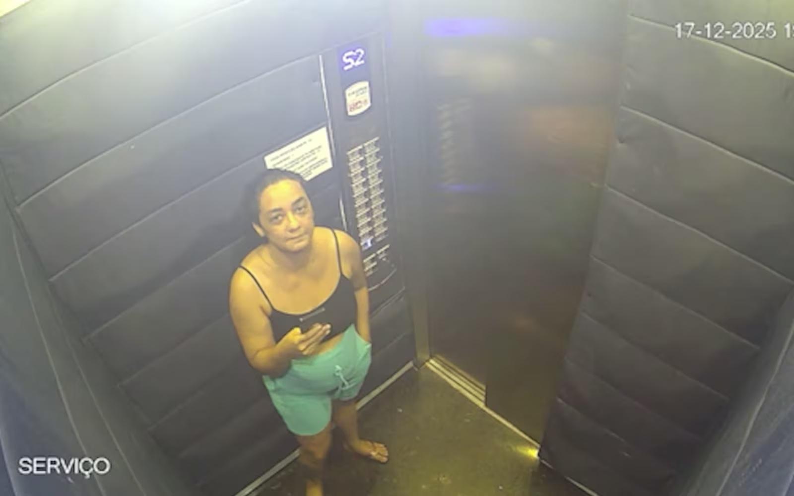 Câmeras de segurança do elevador registraram a corretora por volta das 19h, no dia 17 de dezembro, quando ela desceu para contestar o corte de energia elétrica do apartamento.