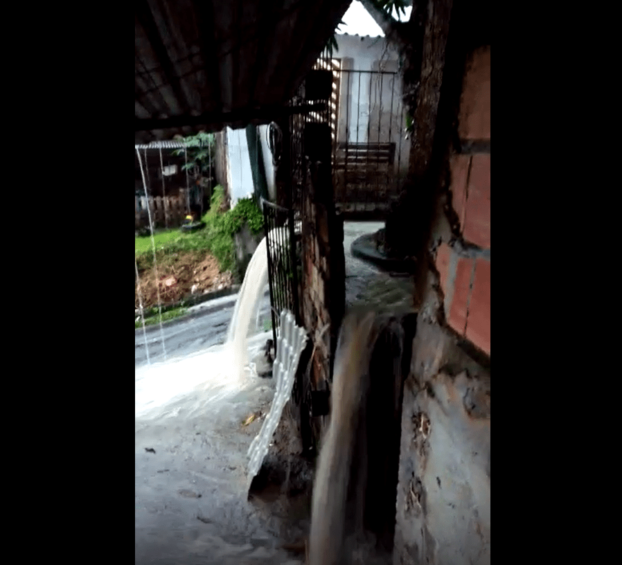 As chuvas, por conta da falta de drenagem pluvial, invadem casas, destruindo móveis, e, principalmente, sonhos e esforços de muitas famílias.