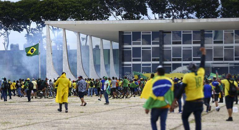 Moraes disse ainda que as pessoas que participaram do movimento “afrontaram as forças policiais, rompendo as barreiras existentes, dirigindo-se aos prédios públicos da Praça dos Três Poderes com o objetivo de promover a destruição generalizada de imóveis e mobiliários”.