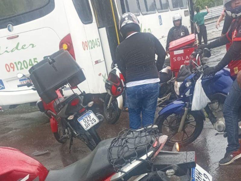 Segundo a polícia, o ônibus fazia uma manobra quando o condutor da moto derrapou na pista escorregadia por conta da chuva. O motorista parou em baixo do ônibus.