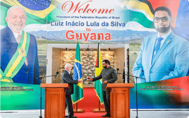 Lula deu a declaração durante pronunciamento à imprensa em Georgetown, capital da Guiana, após reunião com o presidente do país, Irfaan Ali.