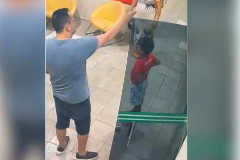 Imagens de câmeras de monitoramento mostram Fábio Litaiff dando tapas na criança enquanto aponta o celular na direção dela. Como resultado da agressão, o menino teve o tímpano perfurado e precisou de atendimento médico.