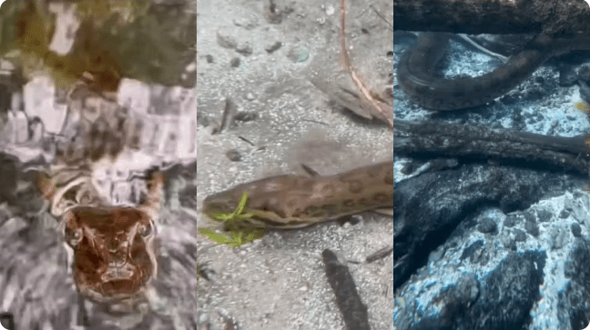 “Sempre que uma sucuri aparece é uma adrenalina, elas são muito calmas, e magnificas”, disse o guia.