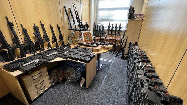A Polícia Federal (PF) divulgou o balanço da Operação Desarmada IV, deflagrada nesta quinta-feira (15) na Baixada Fluminense. Foi recolhido um arsenal com 176 armas: 99 pistolas, 25 fuzis, 21 revólveres, 12 rifles, 11 carabinas, oito espingardas calibre 12, e 528 carregadores de armas de fogo.