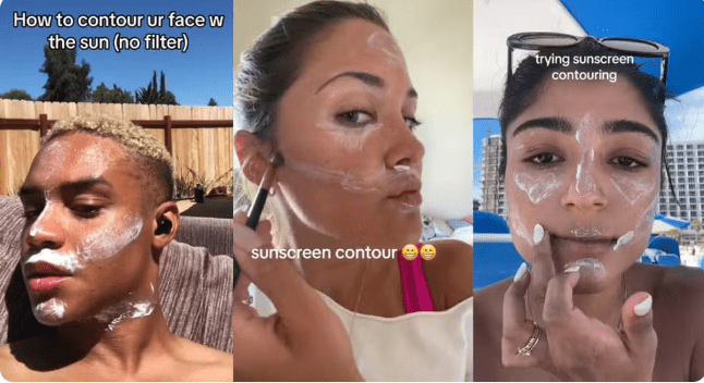 A hashtag #sunscreencontouring (em português, contorno de protetor solar) conta com milhares de vídeos e visualizações, principalmente no TikTok. Nesta trend, perigosa para a saúde, a ideia é basicamente fazer com o protetor solar a técnica de contorno facial que é feita com maquiagem.