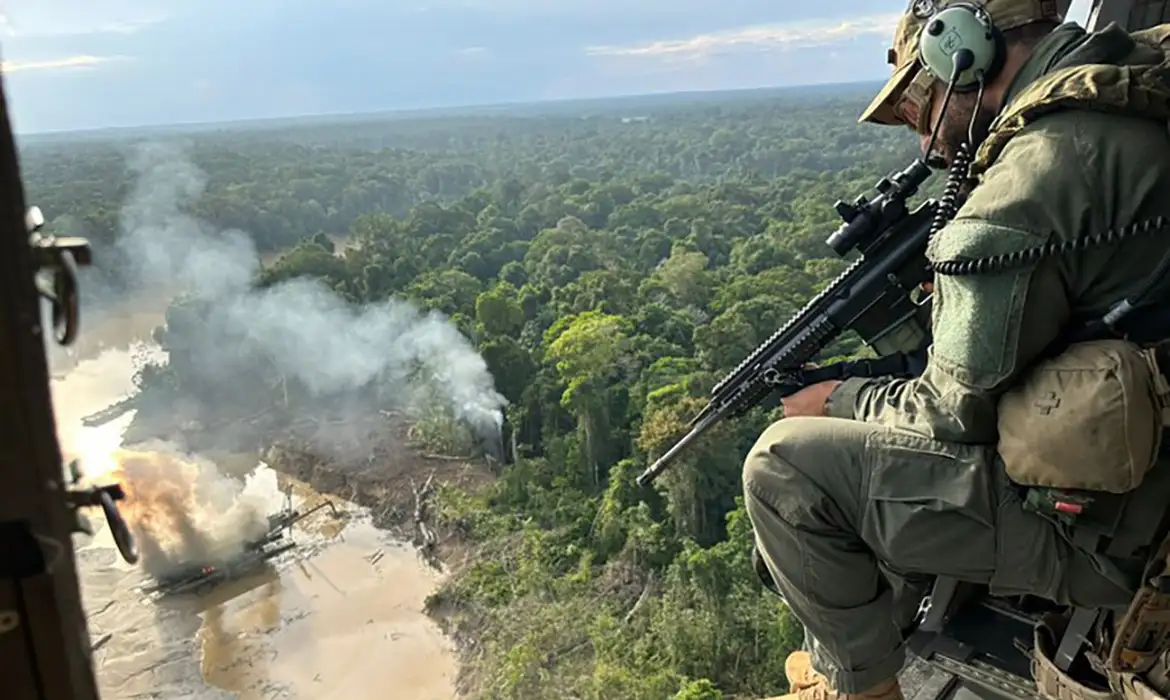 A Operação Fronteira de Ouro foi deflagrada entre a sexta-feira (1º) e o domingo (3) no Amazonas, com o objetivo de “prevenir e reprimir a extração ilegal de minério de ouro” no leito dos rios localizados próximos à região fronteiriça – mais especificamente nos municípios amazonenses do Japurá e Santo Antônio do Içá.