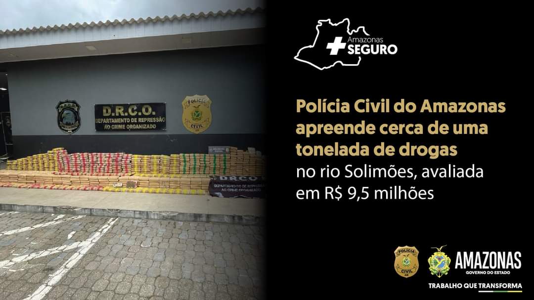 COARI Policiais civis do Departamento de Repressão ao Crime Organizado (DRCO), com o apoio da Delegacia Fluvial (Deflu), deflagraram na terça-feira (06/02), a Operação Déjà vu, que resultou nas prisões de duas pessoas e na apreensão de cerca de uma tonelada de drogas no rio Solimões, nas proximidades do município de Coari (a 363 quilômetros de Manaus). O prejuízo ao crime organizado está avaliado em R$ 9,5 milhões.📝🚨