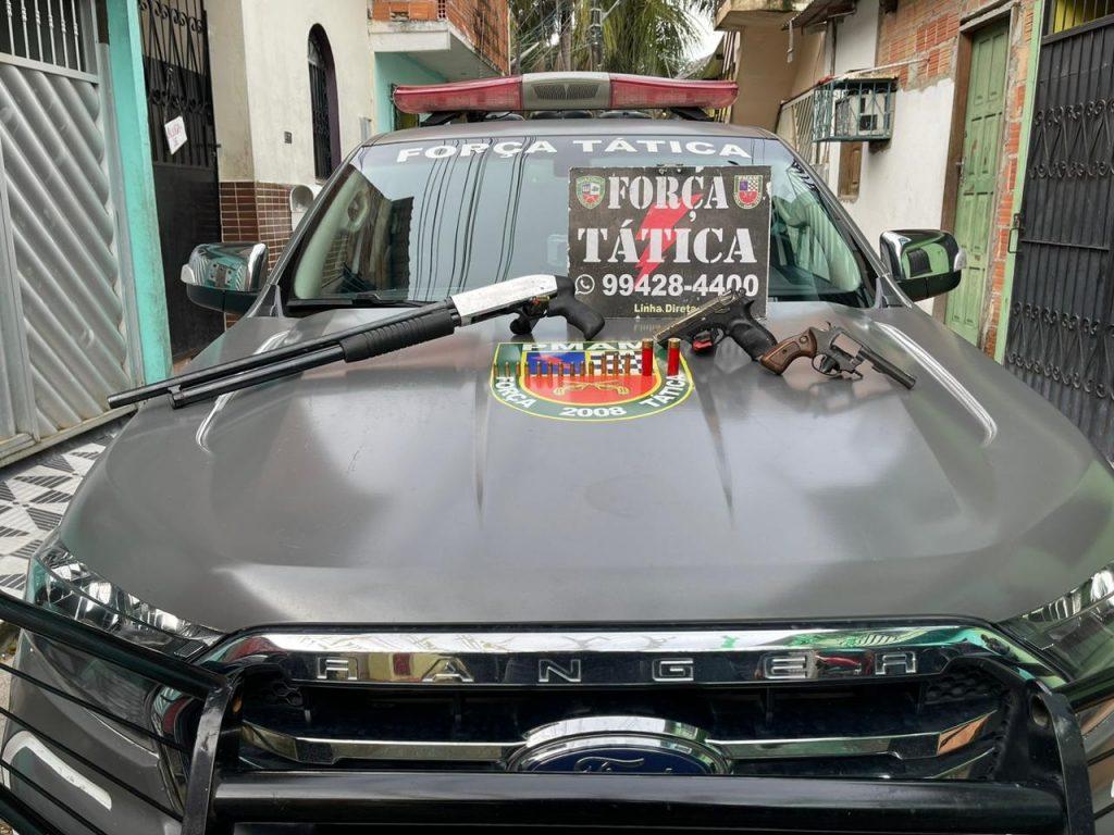 A Polícia Militar do Amazonas (PMAM), por meio da Força Tática, apreendeu três armas de fogo, durante ação na tarde de ontem (22/01), no bairro da União, zona centro-sul da capital amazonense.