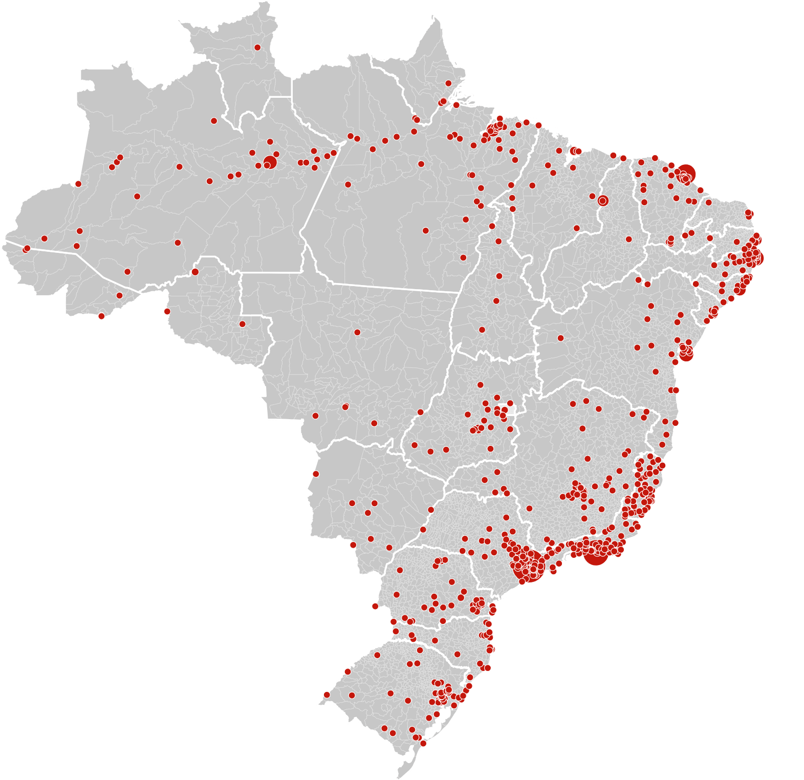 O número de favelas também cresceu. Em 2010, o Brasil tinha 6.329 favelas em 323 municípios. Em 2022, segundo Censo, eram 12.348 favelas distribuídas por 656 municípios.