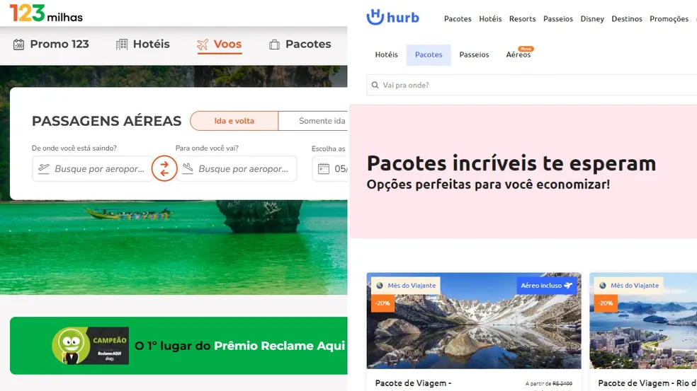 Tanto 123 Milhas quanto Hurb operam os pacotes promocionais da seguinte forma: