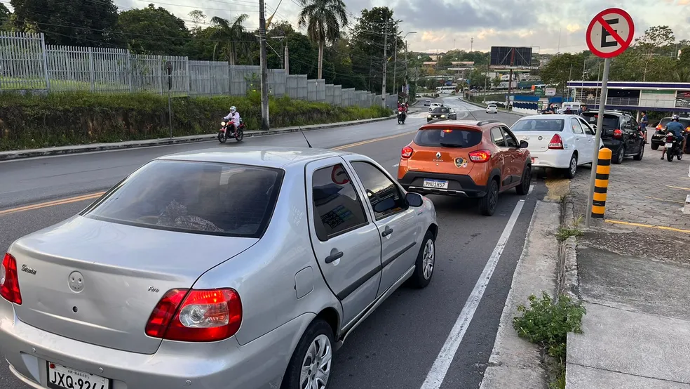 O Posto Equador, na Avenida Rodrigo Otávio, Distrito Industrial I, Zona Sul de Manaus, registrou fila de carros no início da manhã desta quinta-feira (25). O estabelecimento, que participa do Dia Livre de Impostos (DLI) está vendendo o litro da gasolina a R$ 5. Veja outros locais que participam da ação.
