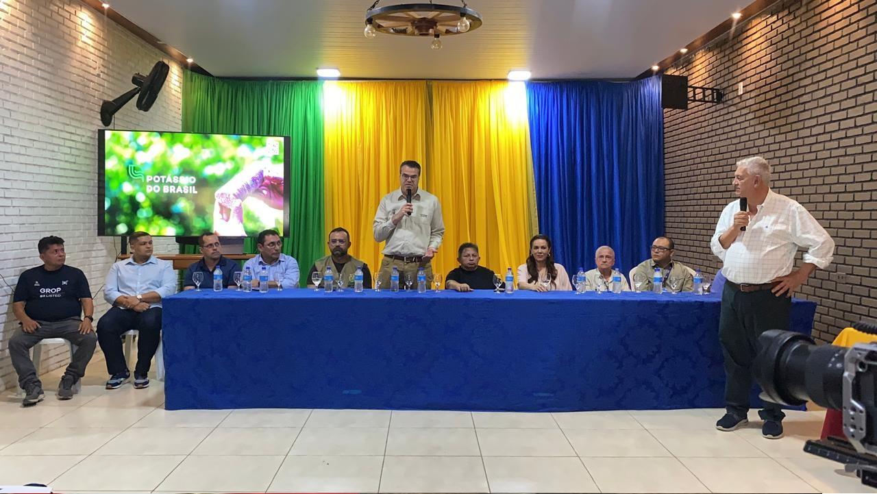 O evento aconteceu em Autazes e reuniu autoridades do legislativo, empresariais, representantes acadêmicos e lideranças comunitárias em uma agenda com os representantes da Brazil Potash, na pessoa de seu CEO, Matt Simpson, acompanhado dos Conselheiros da companhia Con Steers e Luís Adams e do presidente da Potássio do Brasil, Raphael Bloise.