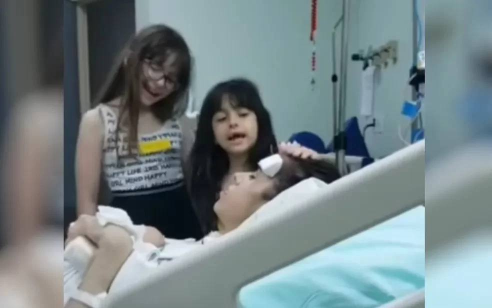 Já a filha mais nova de Thais, Antonella, conta que ajuda nos cuidados com a mãe. “Eu ajudo, passo creme, penteio o cabelo dela, ponho comida para ela”, conta a garota de 7 anos.
