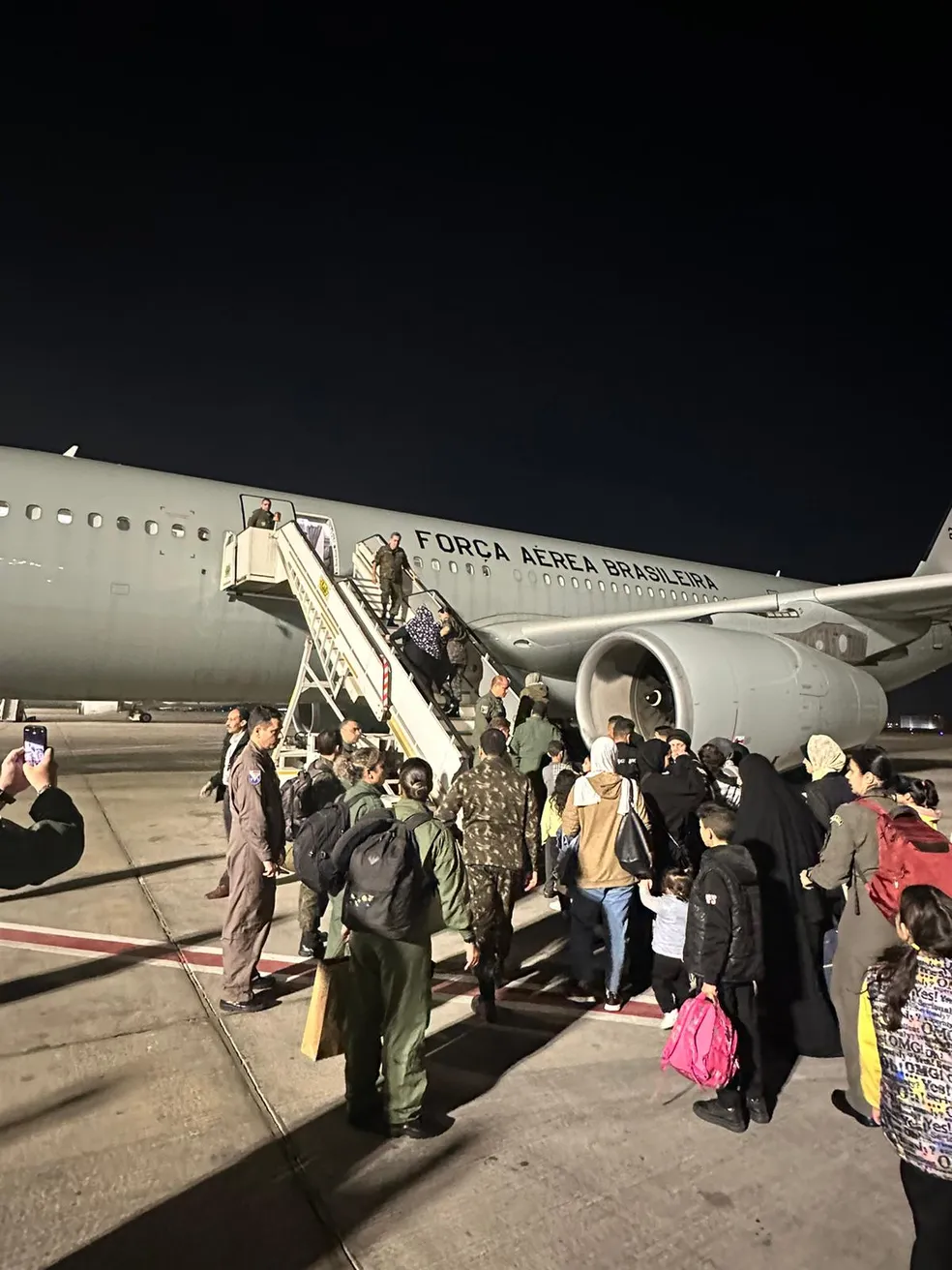 O avião da Força Aérea Brasileira (FAB) que os trouxe pousou em Brasília pouco antes das 4h da manhã (horário local), após um voo sem escalas que partiu de Cairo, no Egito, na noite de domingo (10).