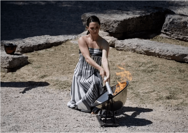 O acendimento da chama olímpica vai marcar o início do revezamento da tocha. O fogo símbolo dos Jogos vai ser conduzido por mais de 10 mil pessoas por 400 cidades francesas até acender a pira das Olimpíadas de Paris, na cerimônia de abertura do dia 26 de julho.