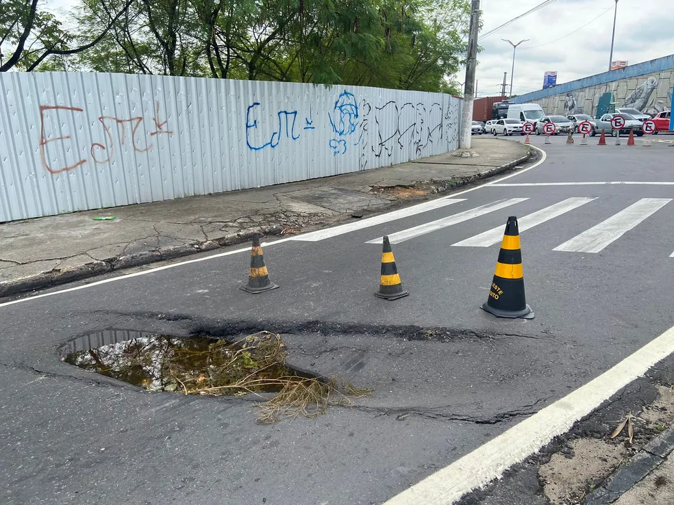 No sábado (1º), a Prefeitura de Manaus, por meio da Secretaria Municipal de Infraestrutura (Seminf), informou que houve um afundamento em parte do trecho da “Bola” do Coroado.