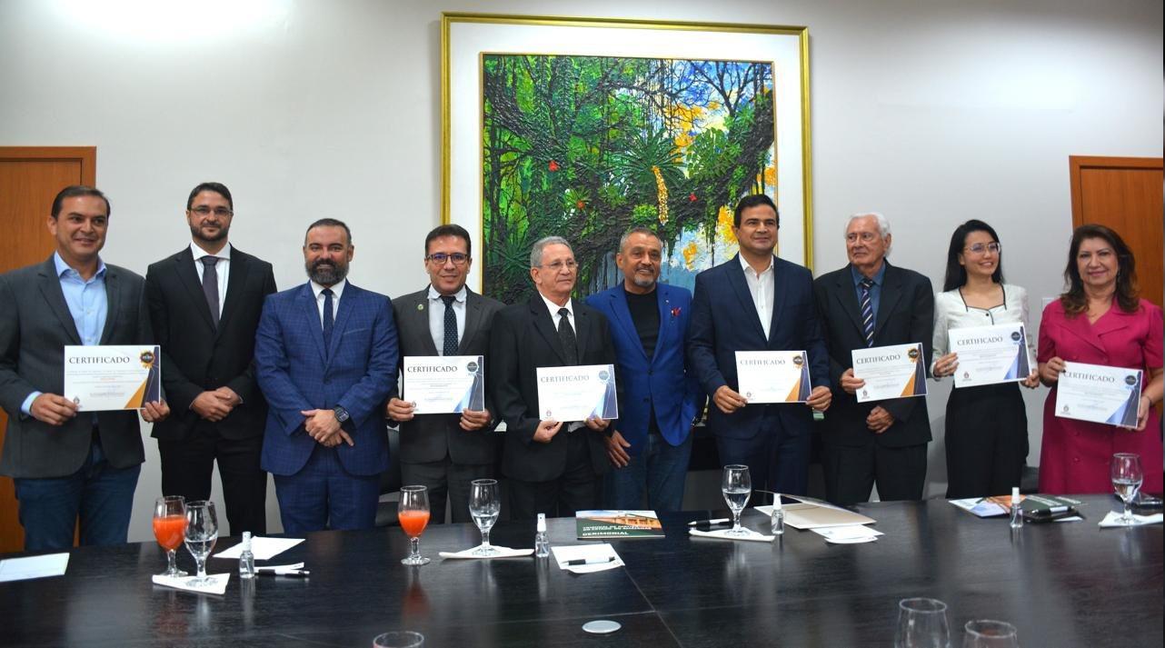 Representantes das entidades e órgãos agraciados estiveram presentes para receber a honraria, que enfatiza a postura proativa e o empenho da UEA em manter uma situação fiscal e judicial impecável. Pelo cumprimento de suas responsabilidades administrativas e financeiras. O selo “Diamante” é um marco de seriedade para a UEA, pelo cumprimento de suas responsabilidades administrativas e financeiras.