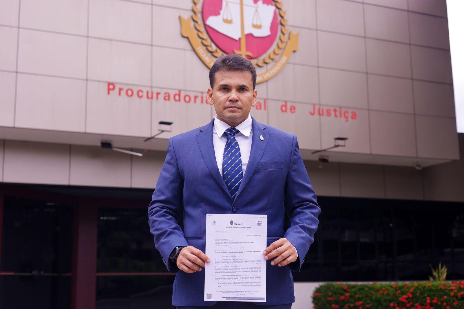 O vereador Coronel Rosses protocolou nesta segunda-feira (10) uma representação no Ministério Público do Amazonas (MPAM), Ministério Público Federal do Amazonas e Delegacia de Receita Federal do Amazonas, solicitando esclarecimentos sobre os gastos da recente viagem do prefeito de Manaus, David Almeida, e empresários ligados à prefeitura ao Caribe no feriado de Carnaval.