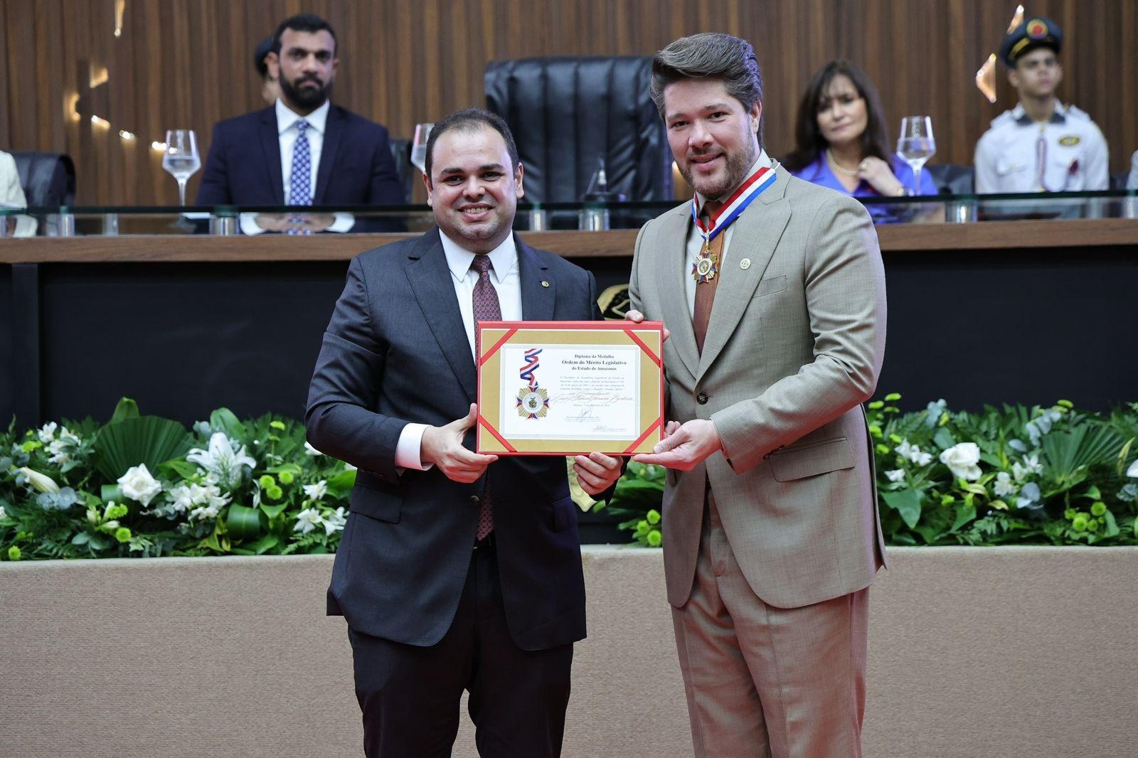 A honraria foi entregue na tarde desta quinta-feira (12) em reconhecimento à sua atuação profissional, que contribuiu significativamente para o desenvolvimento e a valorização da sociedade amazonense. A indicação à outorga da medalha foi dada pelo Conselho de Ordem da Aleam.
